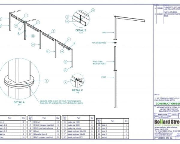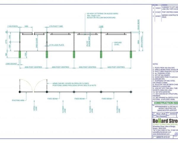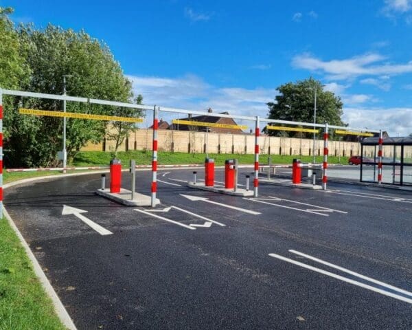 Each section was specifically designed to suit the individual width of the road and each lane. The swivelling arm facility allowing periodic access for ‘taller’ vehicles as and when required.