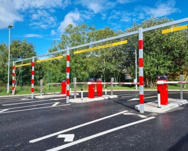 The design manufacture and installation of a bespoke multi lane height restrictor unit to suit the individual traffic lanes of the automatic rising arm barrier system to the car park.