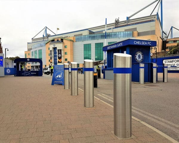 This ‘engineered’ solution negated the need for any expensive civil works which limited disruption to the club. The robust yet stylist bollards concealed the existing bollards and where fitted to a schedule to avoid match days.