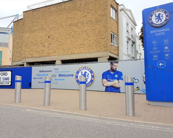 The supply and installation of 73 nr bespoke stainless-steel bollards which where engineered and located over a mix of existing cast iron and mild steel bollards. Bollard Street Ltd undertook a comprehensive full site survey and manufactured a sample bollard for approval by the club.