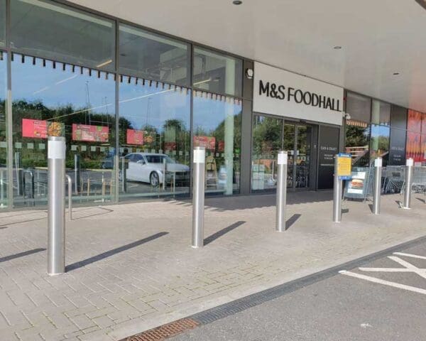 The supply of stainless steel anti-ram bollards and the ‘Tamworth’ design cycle shelter to Marks and Spencer’s new award winning flagships store in Ashby De La Zouch Leicestershire.