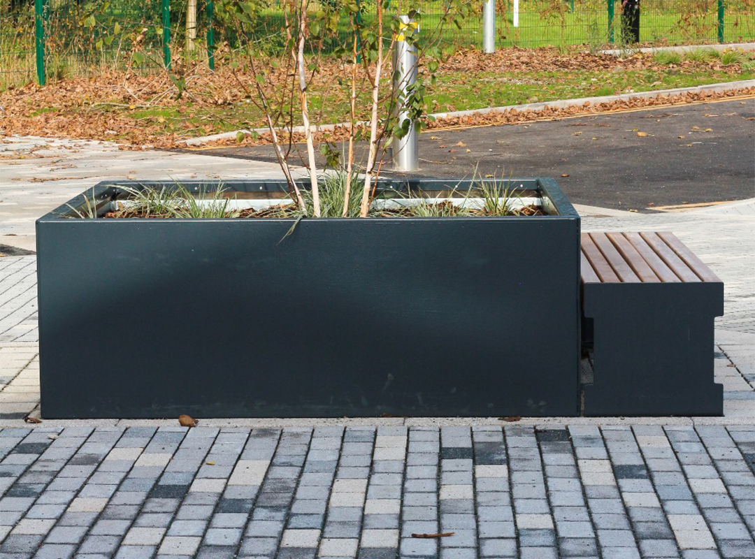The system allows for multiple units to be grouped together, enabling the creation of enclosed planting areas that define boundaries while promoting natural elements in urban settings. Not only do these planters introduce nature and colour into the space, but they also offer effective pedestrian separation from traffic, improving both safety and visual appeal.