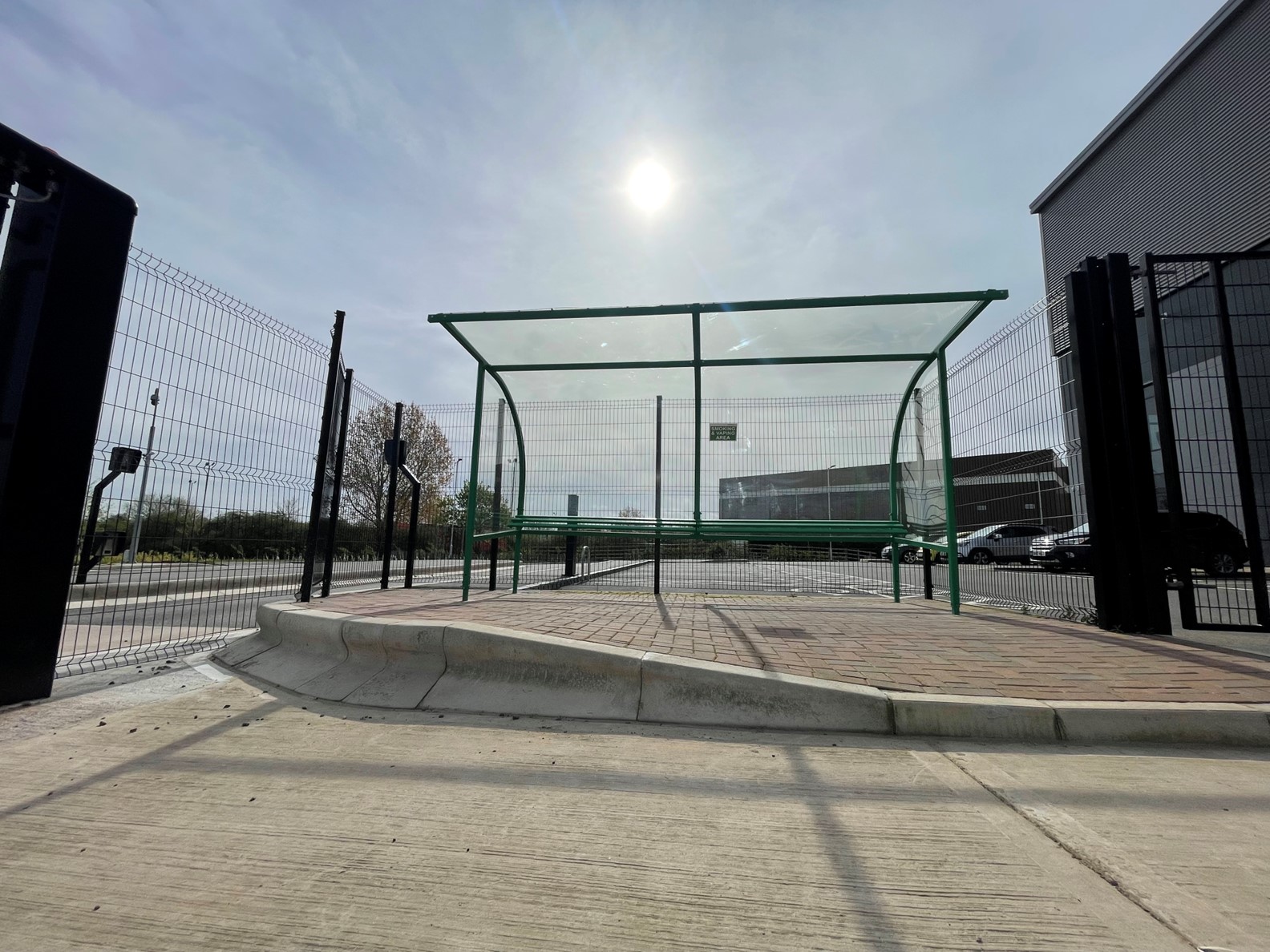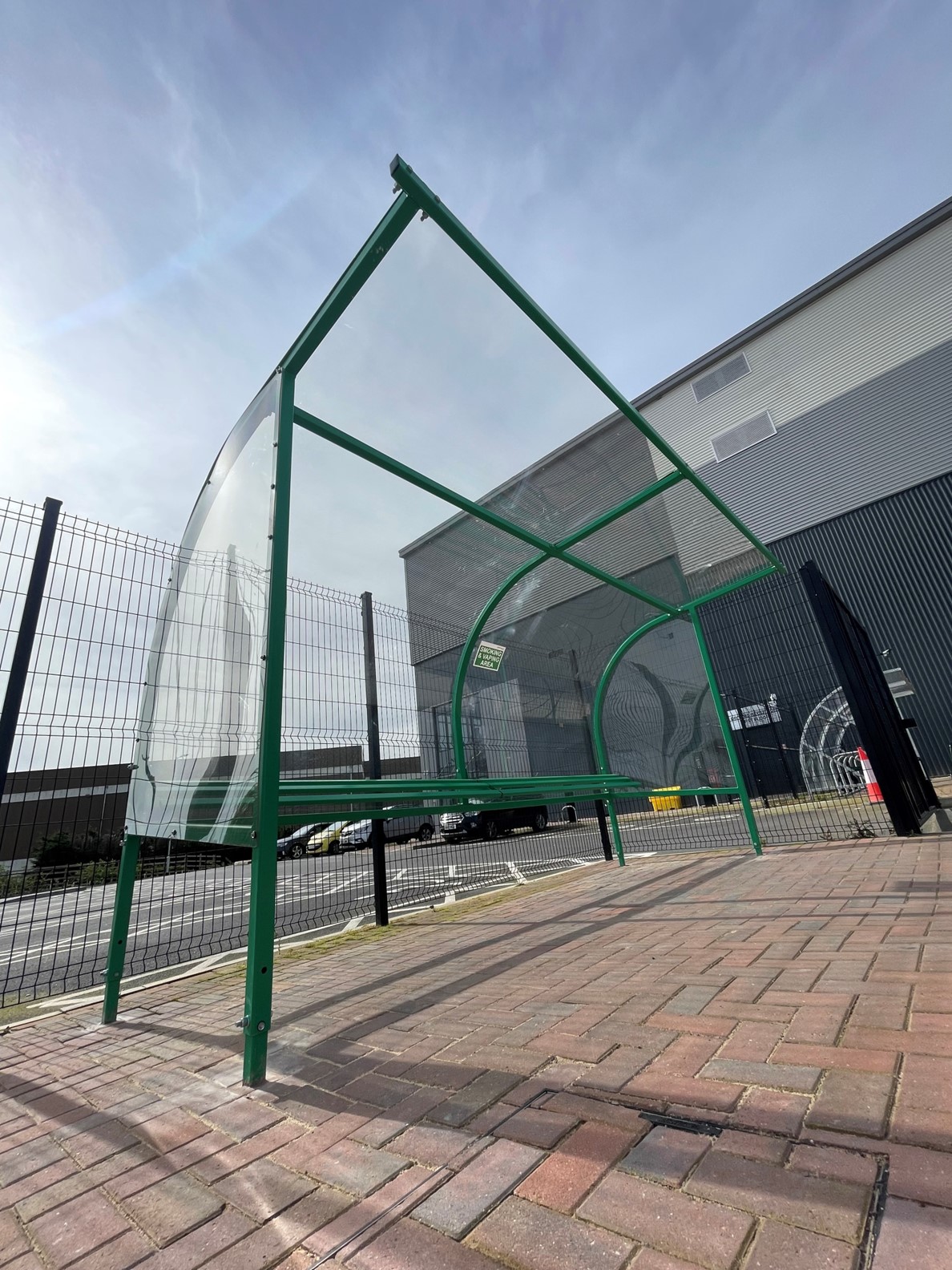 The Derwent smoking shelter is a stylist and versatile shelter featuring a curved roof line and an integral ‘perch’ seat. Manufactured in The UK from 50 mm x 50 mm square strongbox mild steel it’s supplied with all the required fixing and assembly bolts. Available polyester powder coated in most standard RAL colours or hot dipped galvanised to BS EN ISO 1461. It’s supplied with pre-cut 4 mm clear PETg glazing as standard and fully complies with the smoking ban parliament Act 3368.