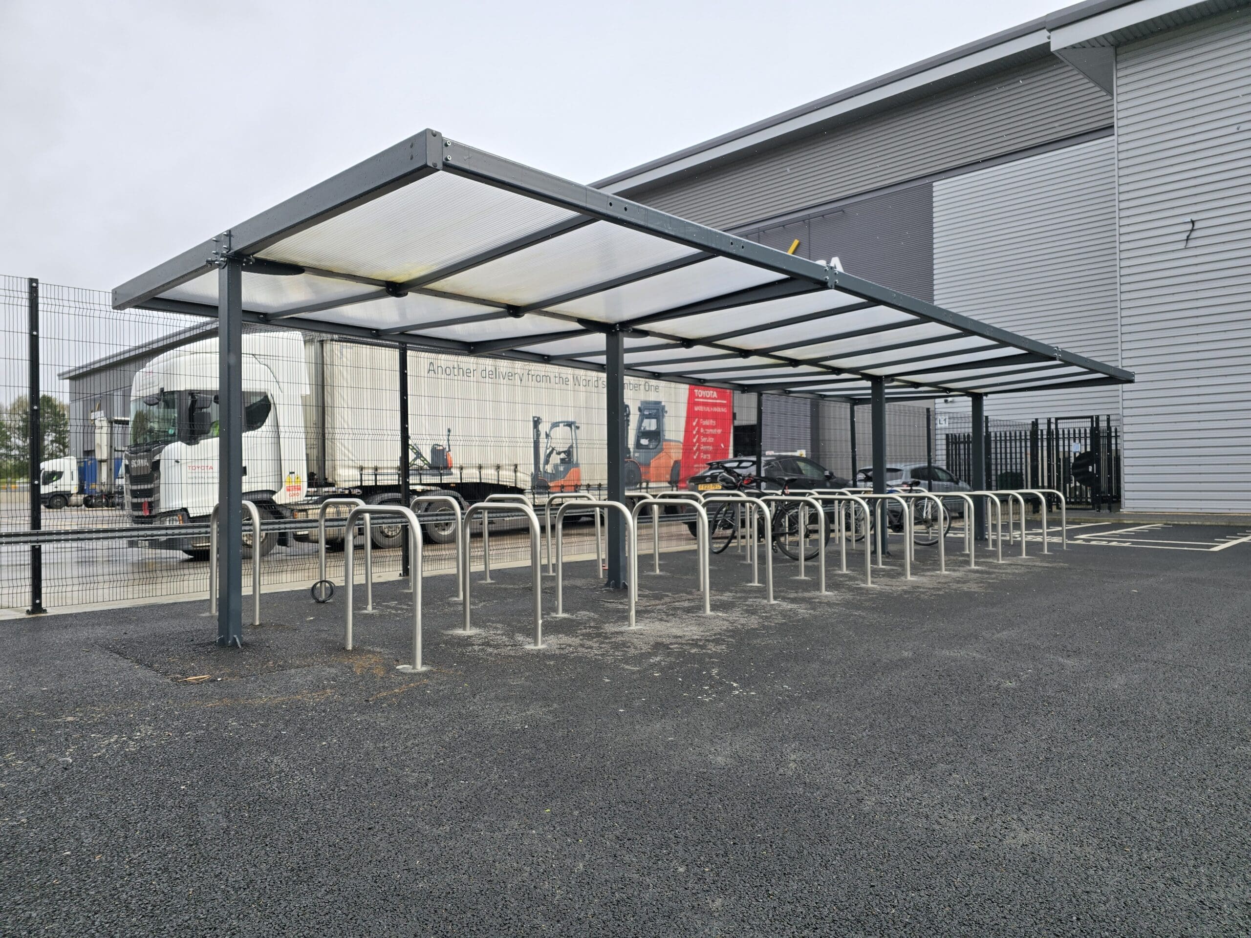 The Gullwing cycle shelter can accommodate up to 24 cycles at 4100 mm length, however its modular design facilitates banks of shelters to be formed which can accommodate cycles which can be approached from both sides of the shelter.